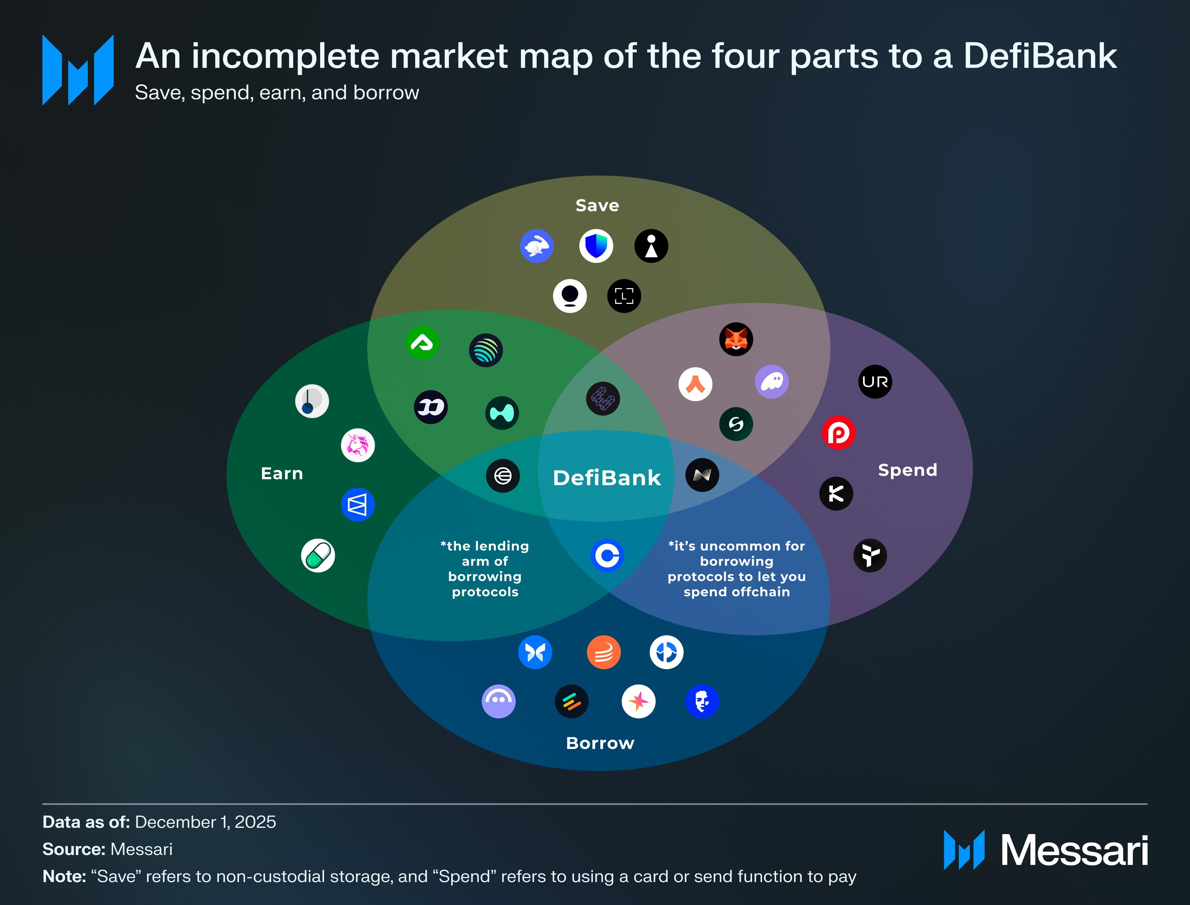 提案される「DefiBank」は、ユーザーが資産を自己保管し、Save/Spend/Earn/Borrowの全機能をオンチェーンで完結させるモデル。