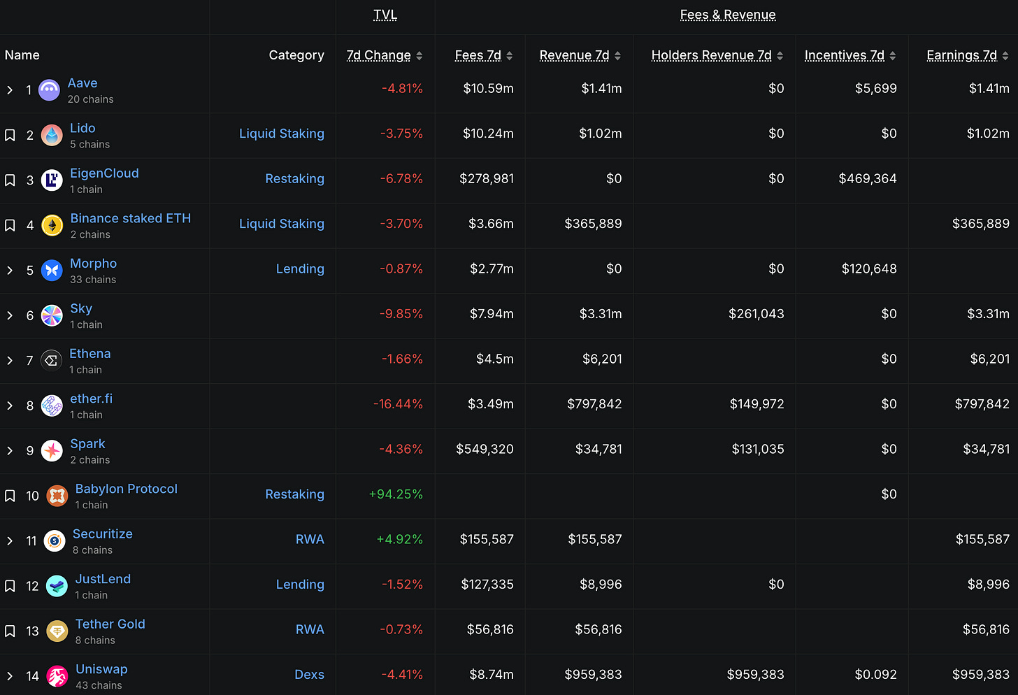 一方、L1/L2やDeFiプロトコルは収益が伸びても評価倍率は大幅に低下。