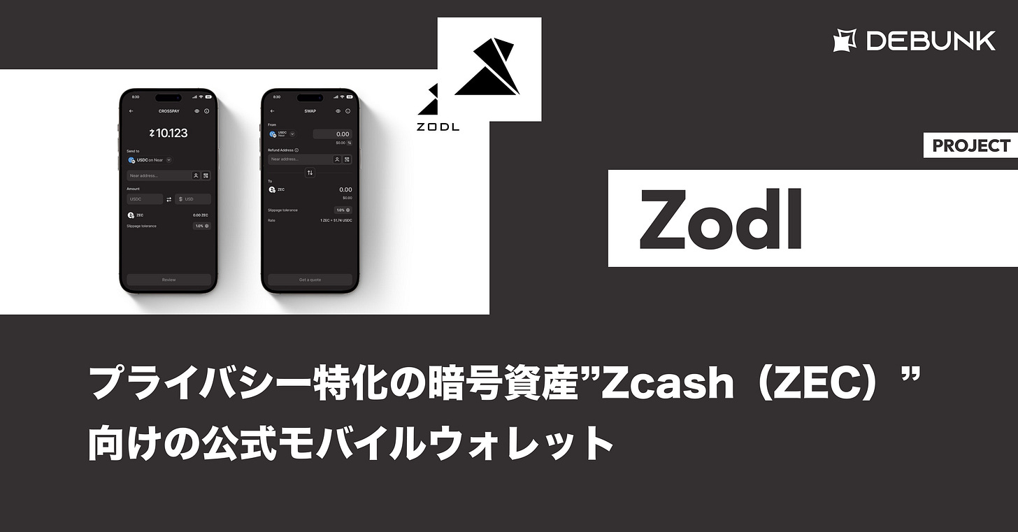 Zodlは、ゼロ知識証明(zk-SNARKs)を活用したプライバシー特化の暗号資産Zcash向け公式モバイルウォレットで、送金・スワップ・実店舗決済まで一本化しながら取引内容をブロックチェーン上に残さない「追跡なし」を実現している。