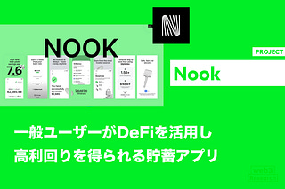 【Nook】一般ユーザーがDeFiを活用し高利回りを得られる貯蓄アプリ / 「通常の銀行口座の約10倍」にあたる年利7~9%程度の利息を得る / Coinbase出身の創業者が設立 / @nook_savings